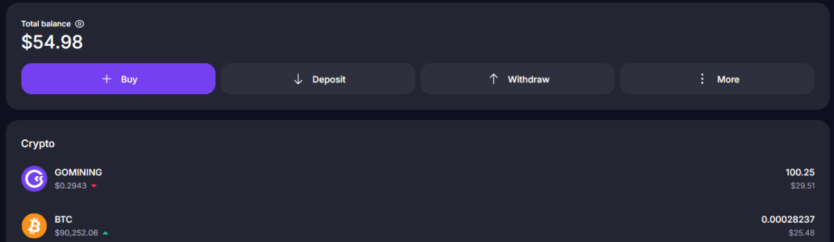Buenas gente! Volvemos tras un tiempo bastante ocupado con los updates de mis últimos 3 ciclos (semanas) de experiencia en GoMining: Mantenemos potencia de 18.2 TH y eficiencia de 15W, aunque tras la bajada del BTC GoMining ha bajado sus precios y ahora en Black Friday se vienen promociones buenas buenas. Cuando las sepa en detalle, volveré! Ciclo 116: BTC minado: 0.00005877 (6.16$) Bounty: 3.90 GMT (1.35$) Semana flojita en puntos, faltó la tarea de reddit y encima el mercado estaba complicado complicado para BTC y GMT... Ciclo 117: BTC Minado: 0.00006499 BTC (5.95$) Bounty: 30.79 GMT (9.71$) Buena semana para el bounty, en el momento que suban los precios ganaremos más. Ciclo 118: BTC Minado: 0.00006022 BTC (5.28$) Bounty: 12.87 GMT (3.90$) Otra semana sin reddit, asi que sumamos un poco menos de bounty pero igual suma. Aun no retiré, asi que tras pagar el mantenimiento de estas 3 semanas y acumular BTC, así quedó mi cartera en GoMining: A buenos precios (BTC a +115k$ y GMT sobre los 0.40$) tendríamos como 40$ en GMT y unos 32.5$ en BTC, lo que sumaría un total de +70$ en 3 semanas de forma pasiva... Nada mal. Nos vemos en la próxima! -