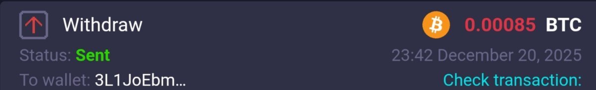 Your withdrawal request has been successfully completed. Payment information System: Litecoin, LTC TXID: 03b17fcc26299f031a98540373d9635c1688ea8756a434e422a7f40fa089a73b Amount: 0.01 LTC (~ 0.78 USD)