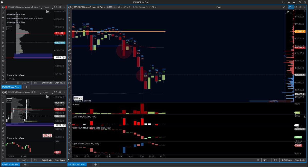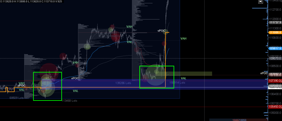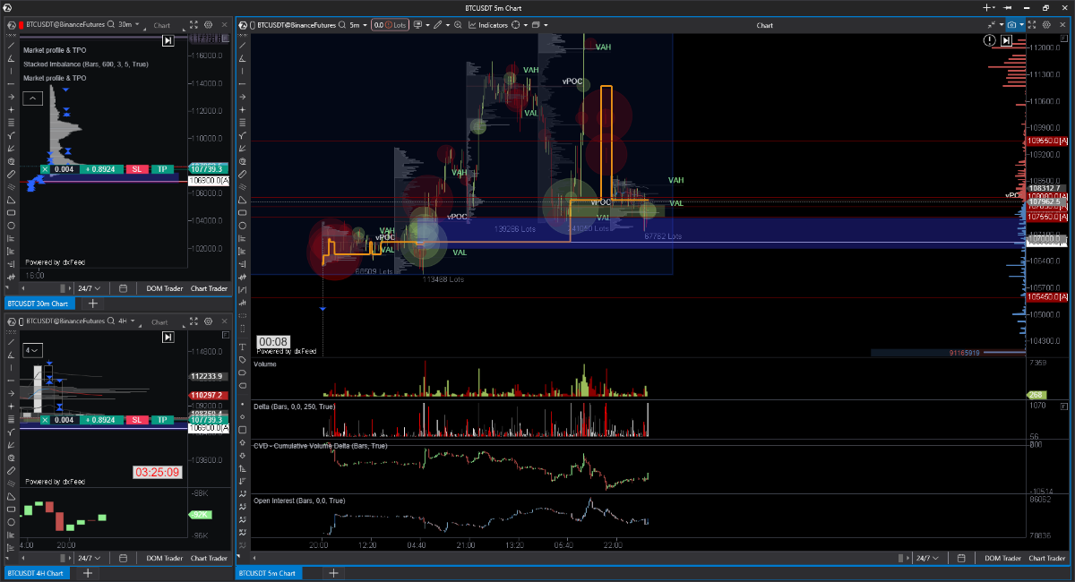 0xOzz Publicado ayer a las 04:30 PM Autor Share Publicado ayer a las 04:30 PM (editado) Me percaté que no habia actualizado esto bien aquí lo puse en el otro post xD! Update $BTC un poco de monitoreo de ORDERFLOW durante el fin de semana: Durante el fin de semana del Domingo! Estuvo mviendose mucho volumen spot delta! Evidenciando compras agresivas Este recuadro naranja donde aparecieron la mayor cantidad de ordenes de compra para el impulso. Si pierde este nivel voy a considerar ponerme bajista a corto plazo: nivel clave para defensa del impuilso: 106850 Dense cuenta que justo en los 108 aparecieron grandes volumenes de venta. (las burbujas rojas y verdes son indicados de footpring llamado big trades) que filtra los desequilibrios de la subasta en las velas de manera personalizable a traves del delta. Mientras mas grande la burbuja mas intencionalidad y mayoir volumen. ¿Como se interpreta esto? por momentum y por la estrategia de "Trapped delta" El trapped delta es una estrategia de esperar a que cierta cantidad de posiciones queden atrapadas. Imaginate por ejemplo que un grupo de compradores / vendedores abre una posición e inmediatamente esta se le va en contra. A esto se le determina como posiciones atrapadas que están en perdidas, y que si son lo suficientemente apretados se veran obligados a cerrar su posición o liquidarse, para ser parte del impulso direccional. Por eso una estrategia factible es esperar a que operadores queden atrapados ¿Por que? Porque estos operadores atrapados significa que a pesar de la cantidad de volumen que estan abriendo en contra de la dirección del percio, logran ser absorbidas, dejando una huella de que hay interes comprador en ese nivel... por el contrario si el precio se devuelve y aparece mas impulso vendedor significaria que estan tratando de defender ese nivel. En ventas en este caso vean como han habido muchas burbujas rojas grandes en este rango: aqui por ejemplo en ese desequilibrio podemos ver ordeenes ejecutada a market de mas de 561 btc en esa sola vela de 5minutos efectivamente logro rompiendo por encima del nivel de gran intencionalidad de venta: para luego de la posterior ruptura testear el nivel donde aparecieron el flujo de compras agresivas que lograron romper el nivel denotando la huella institucional o de grandes compradores. Como es lógico pensar este es el nivel clave a defender y monitorear a BTC como soporte si queremos una continuación de la recuperación, zona: 107 --- 21/10/2025 La zona planteada por el gran flujo de ordenes fue defendida, siendo la mayor área de interes determinada por el flujo de ordenes. Lo que nos demuestra lo poderosa que es esta herramienta y no ver las velas vacias, determinando la subasta y pudiendo seguir a tiempo real la huella del institucional Editado ayer a las 04:30 PM por 0xOzz Citar Enlace al comentario Compartir en otros sitios web More sharing options...