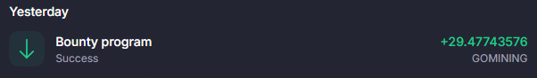 Seguimos con actualizaciones por aqui! Ayer recibimos las recompensas del último bounty semanal, sumando casi 30 GMT (12$ aprox) a las ganancias de la semana.